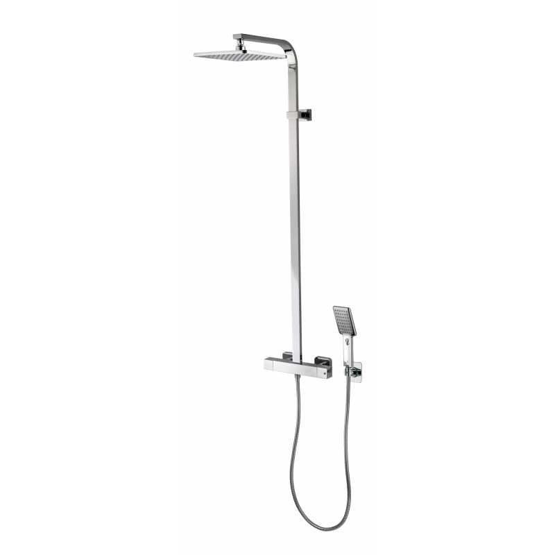 Bossini Cosmo Душевая стойка: смеситель, ручной и верхний душ, 1 вид струи, шланг, цвет: chrome L40002.030 и другие сантехнические изделия бренда характеризует надежность, высокое качество и продолжительный срок службы. Изделие в стилистике лофт впечатляюще будет смотреться в различных цветовых решениях помещения.