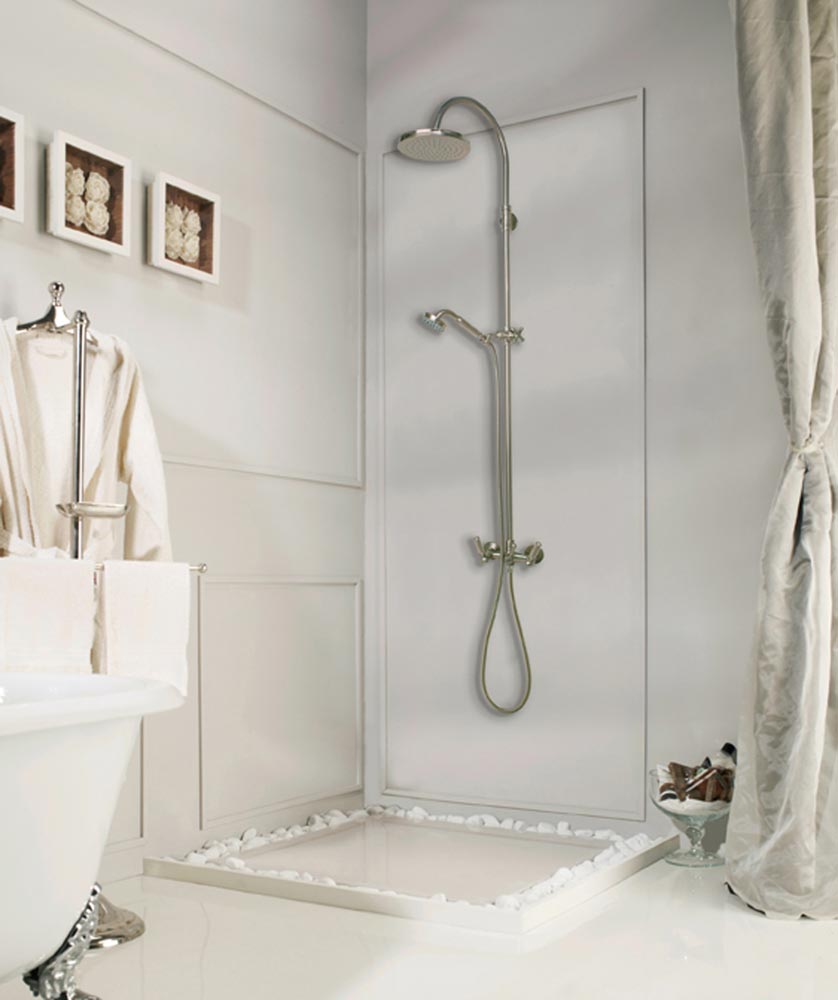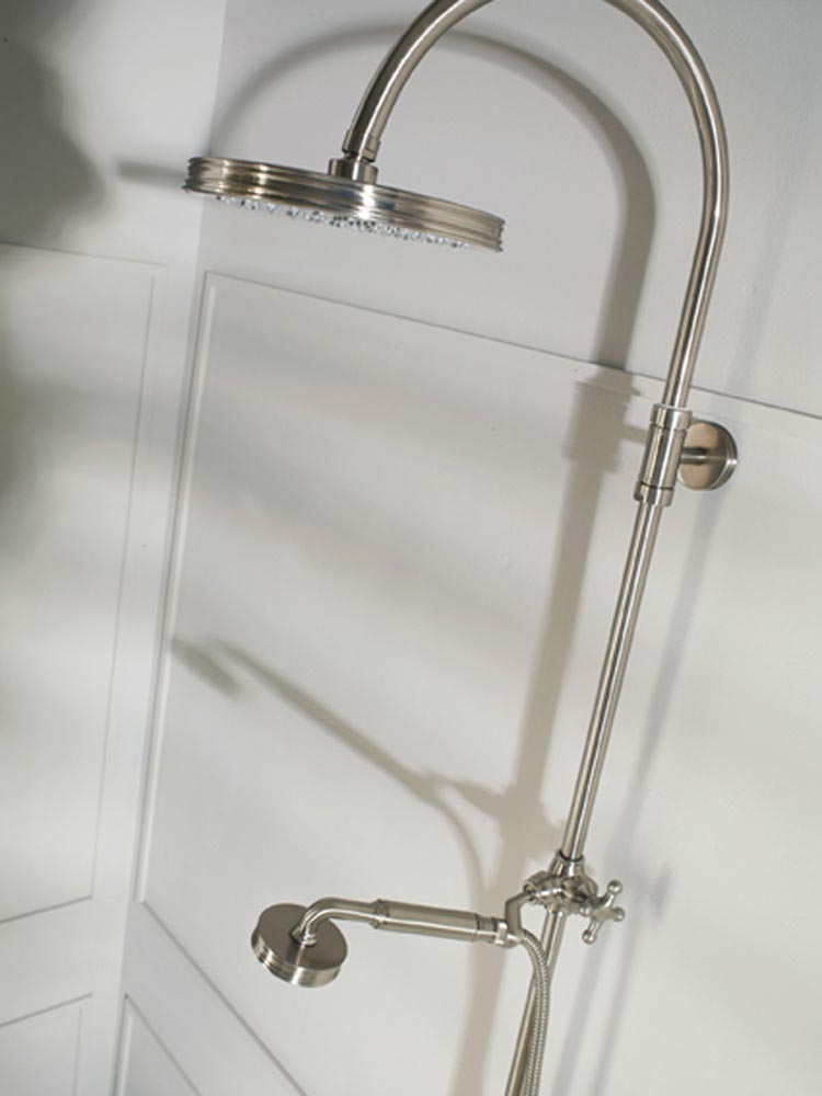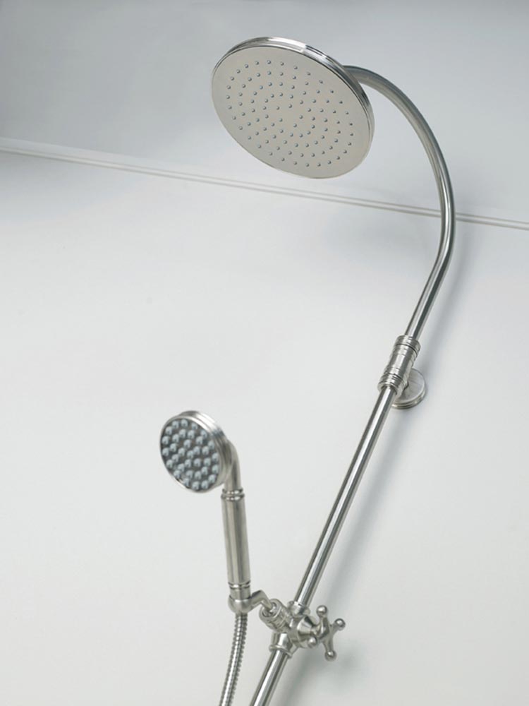 Bossini Liberty Душевая стойка: смеситель, ручной и верхний душ, 1 вид струи, шланг, цвет: chrome L01201.030 и другие сантехнические изделия бренда характеризует надежность, высокое качество и продолжительный срок службы. Изделие в стилистике лофт впечатляюще будет смотреться в различных цветовых решениях помещения.