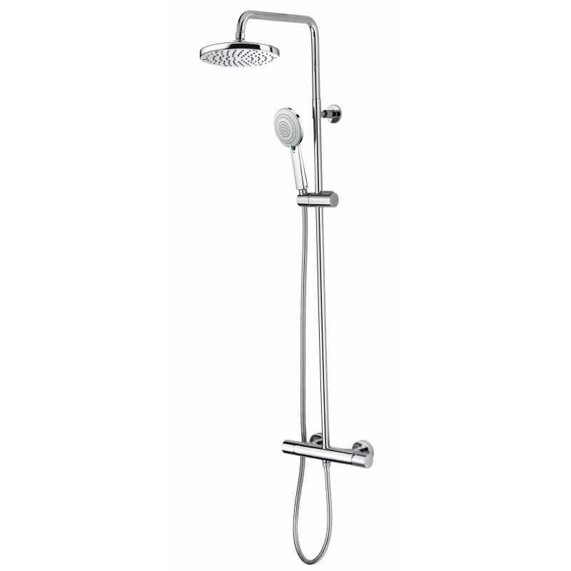 Bossini Oki Душевая стойка: смеситель, ручной и верхний душ, 2 вида струи, шланг, цвет: chrome L10016.030 и другие сантехнические изделия бренда характеризует надежность, высокое качество и продолжительный срок службы. Изделие в стилистике неоклассика впечатляюще будет смотреться в различных цветовых решениях помещения.