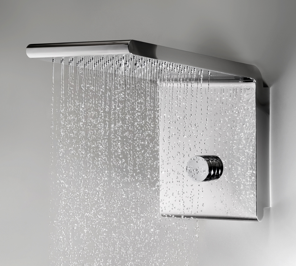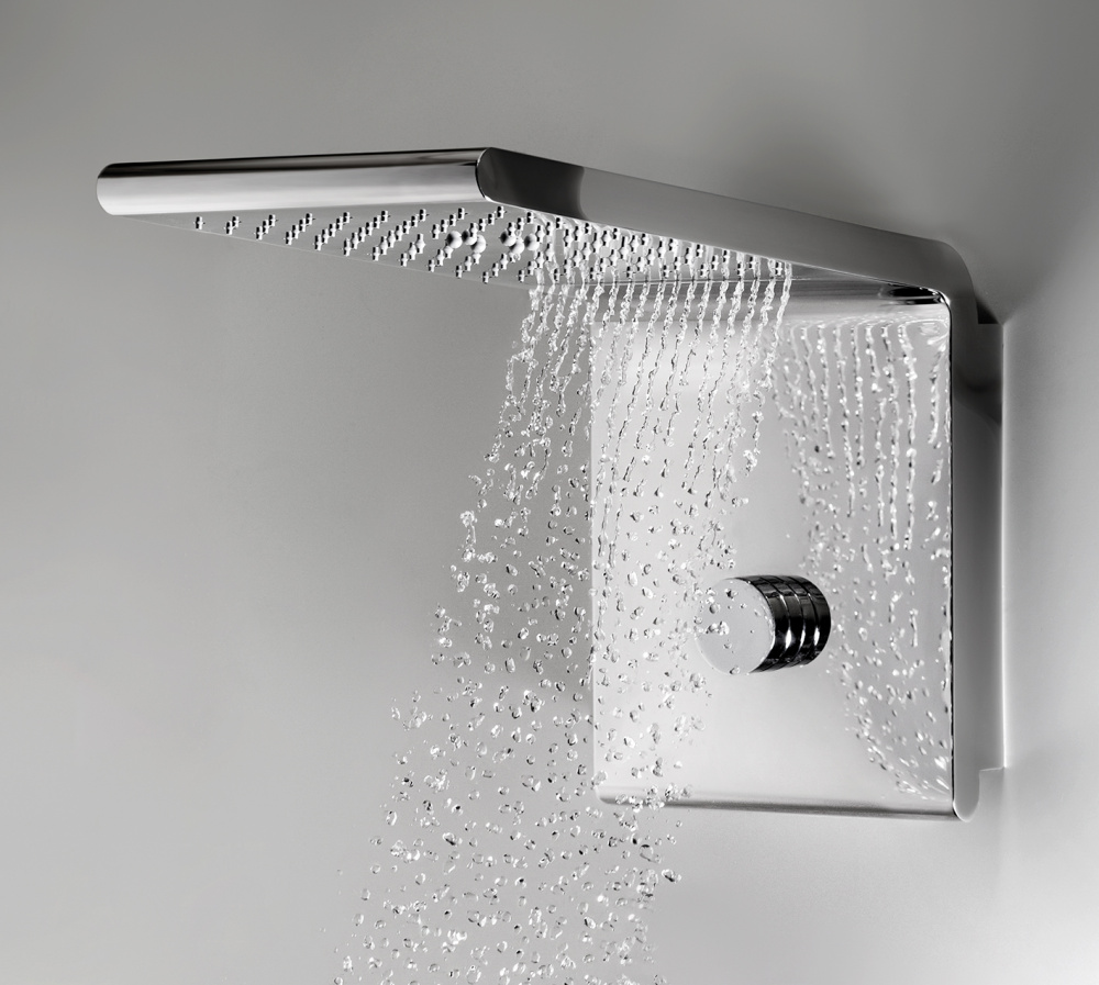 Bossini Syncro Душевая панель с термостатом - верхний душ, 3 вида струи, цвет: chrome I00590.030 и другие сантехнические изделия бренда характеризует надежность, высокое качество и продолжительный срок службы. Изделие в стилистике hi-tech впечатляюще будет смотреться в различных цветовых решениях помещения.