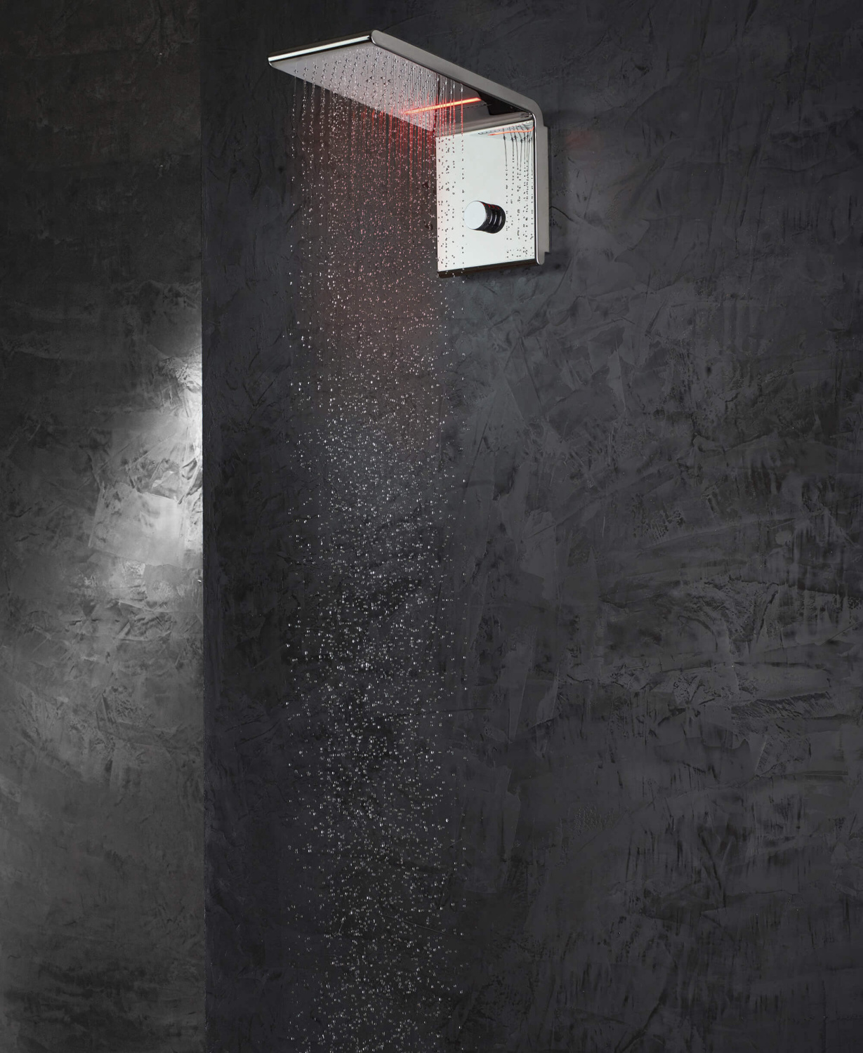 Bossini Syncro Душевая панель с терм. - верхний душ, 3 вида струи, хромотера., LED RGB, цвет: chrome I00633.030 и другие сантехнические изделия бренда характеризует надежность, высокое качество и продолжительный срок службы. Изделие в стилистике hi-tech впечатляюще будет смотреться в различных цветовых решениях помещения.