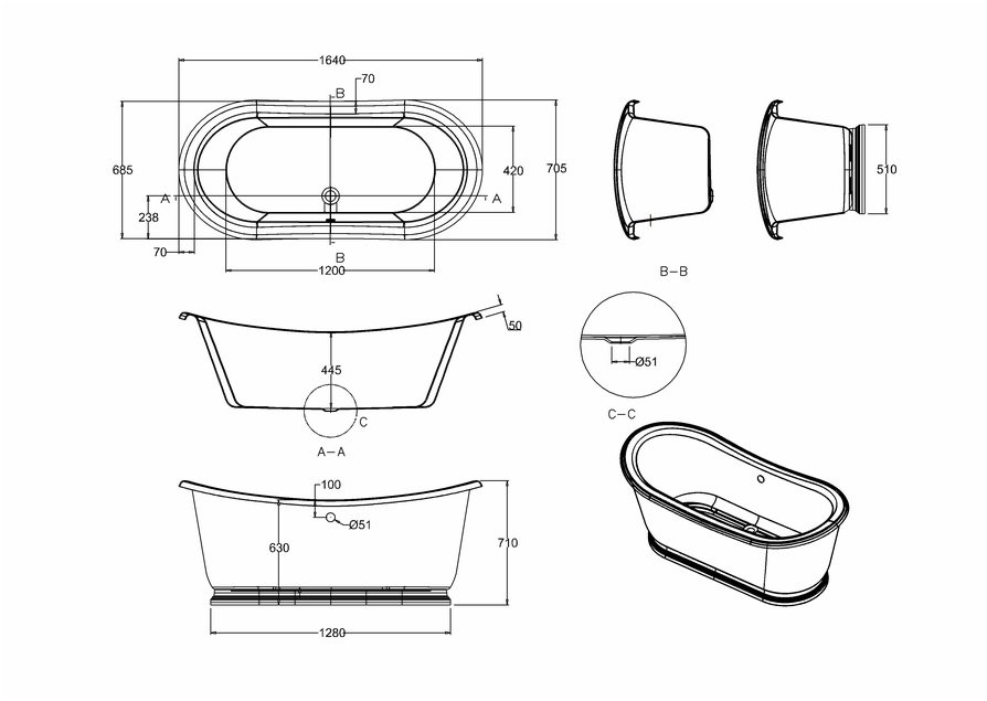 Burlington Admiral Акриловая ванна отдельностоящая 164х70,5 см, перелив по центру, цвет: белый глянц ET5C и другие сантехнические изделия бренда характеризует надежность, высокое качество и продолжительный срок службы. Изделие в стилистике английская классика впечатляюще будет смотреться в различных цветовых решениях помещения.