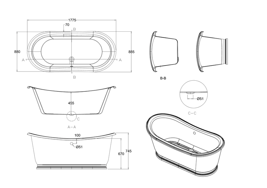 Burlington Admiral Акриловая ванна отдельностоящая 178х89 см, перелив по центру, цвет: белый глянец ET6C и другие сантехнические изделия бренда характеризует надежность, высокое качество и продолжительный срок службы. Изделие в стилистике английская классика впечатляюще будет смотреться в различных цветовых решениях помещения.