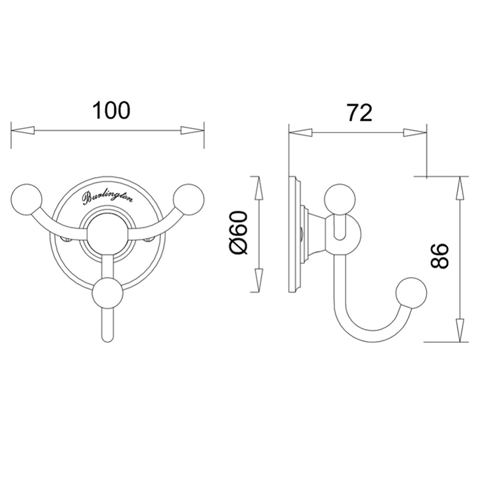 Burlington Black Крючок для полотенец тройной, подвесной, цвет: хром/орех глянцевый A47 WAL и другие сантехнические изделия бренда характеризует надежность, высокое качество и продолжительный срок службы. Изделие в стилистике английская классика впечатляюще будет смотреться в различных цветовых решениях помещения.