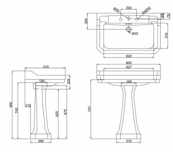 Burlington Edwardian Пьедестал для раковины B1/B2/B14/B15/B18, напольный 68h см, цвет: белый глянец P6 и другие сантехнические изделия бренда характеризует надежность, высокое качество и продолжительный срок службы. Изделие в стилистике английская классика впечатляюще будет смотреться в различных цветовых решениях помещения.