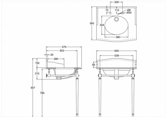 Burlington Georgian Консоль под раковину B15 1TH, напольная 53,8х50,3х78,5h см, цвет: хром глянцевый T49A CHR и другие сантехнические изделия бренда характеризует надежность, высокое качество и продолжительный срок службы. Изделие в стилистике английская классика впечатляюще будет смотреться в различных цветовых решениях помещения.