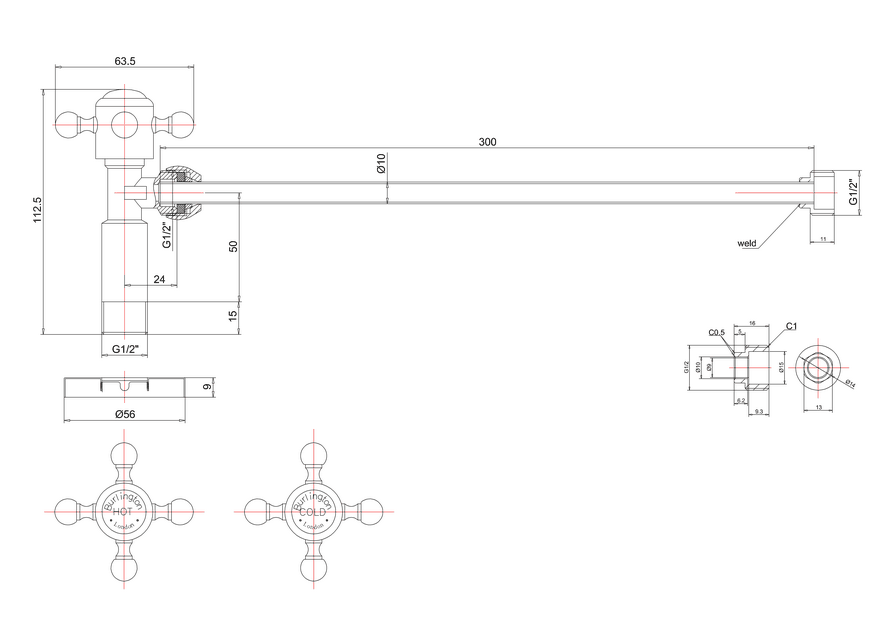 Burlington Вентиль подвода воды для раковины, цвет: хром/черный глянцевый W28 BLA и другие сантехнические изделия бренда характеризует надежность, высокое качество и продолжительный срок службы. Изделие в стилистике английская классика впечатляюще будет смотреться в различных цветовых решениях помещения.