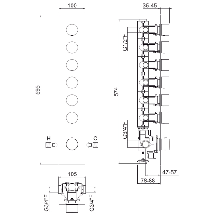 Carimali Встраиваемая часть для термостатического смесителя с 6-ю независимыми выходами W21069CR и другие сантехнические изделия бренда характеризует надежность, высокое качество и продолжительный срок службы. Изделие в стилистике лофт впечатляюще будет смотреться в различных цветовых решениях помещения.