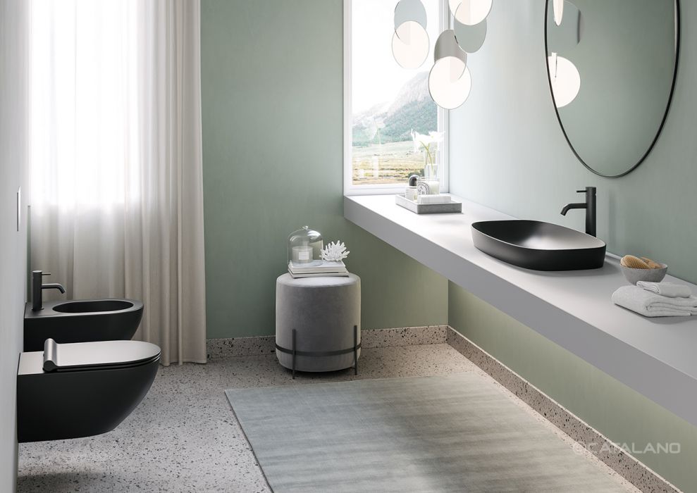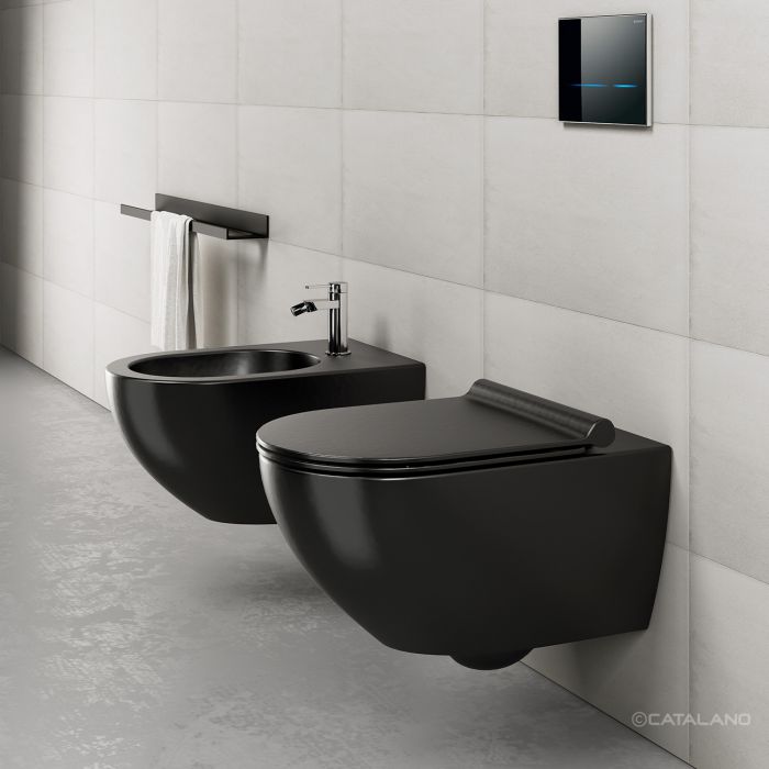 Catalano Sfera Унитаз подвесной безободковый 35x54 см, смыв торнадо, цвет: черный матовый 1VSF54RNS и другие сантехнические изделия бренда характеризует надежность, высокое качество и продолжительный срок службы. Изделие в стилистике неоклассика впечатляюще будет смотреться в различных цветовых решениях помещения.