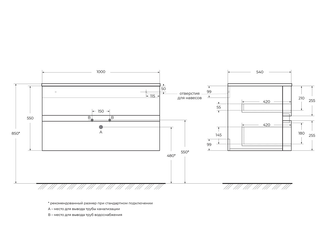 Cezares Elettra Тумба под раковину подвесная 100x54x55h см, цвет: grafito 55526 и другие сантехнические изделия бренда характеризует надежность, высокое качество и продолжительный срок службы. Изделие в стилистике минимализм впечатляюще будет смотреться в различных цветовых решениях помещения.