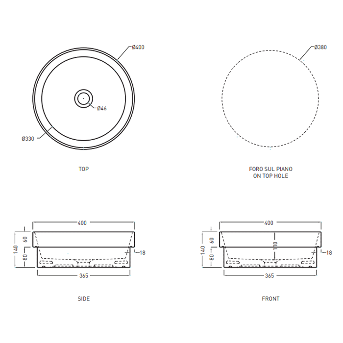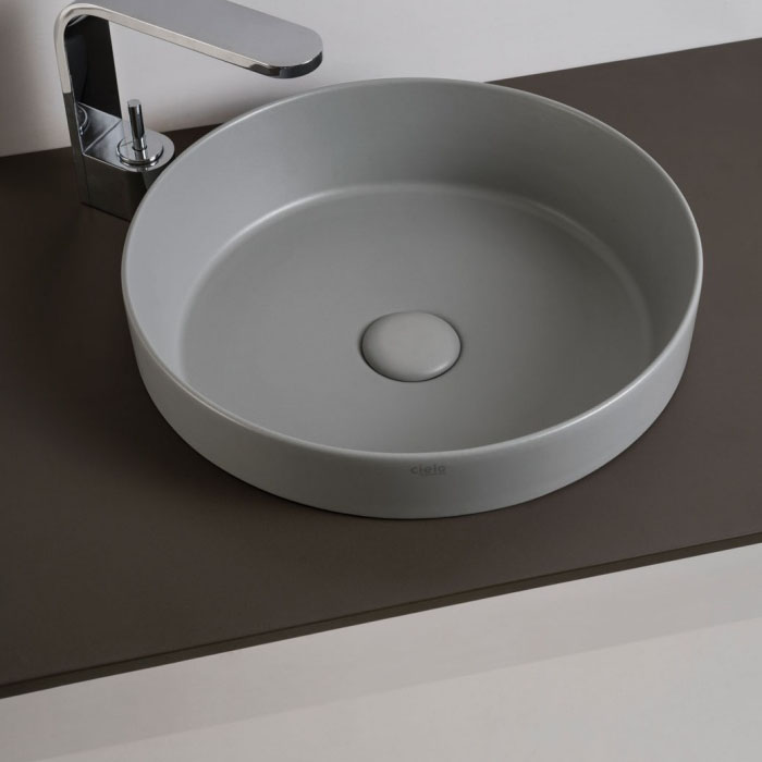 Cielo Enjoy Раковина полувстроенная 40х40хh14 см, круглая, цвет: серый EJLASITBR и другие сантехнические изделия бренда характеризует надежность, высокое качество и продолжительный срок службы. Изделие в стилистике минимализм впечатляюще будет смотреться в различных цветовых решениях помещения.