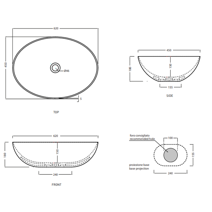 Закажите Cielo Era-Eco Раковина накладная 62x45xh18 см, овальная, цвет: basalto BAECOBA от производителя Cielo, коллекция Era-Eco в салоне европейской сантехники Дизайн Сантехники с быстрой доставкой по Москве. Представлены подробные характеристики и фотографии, которые позволят сделать правильный выбор и заказать товар.