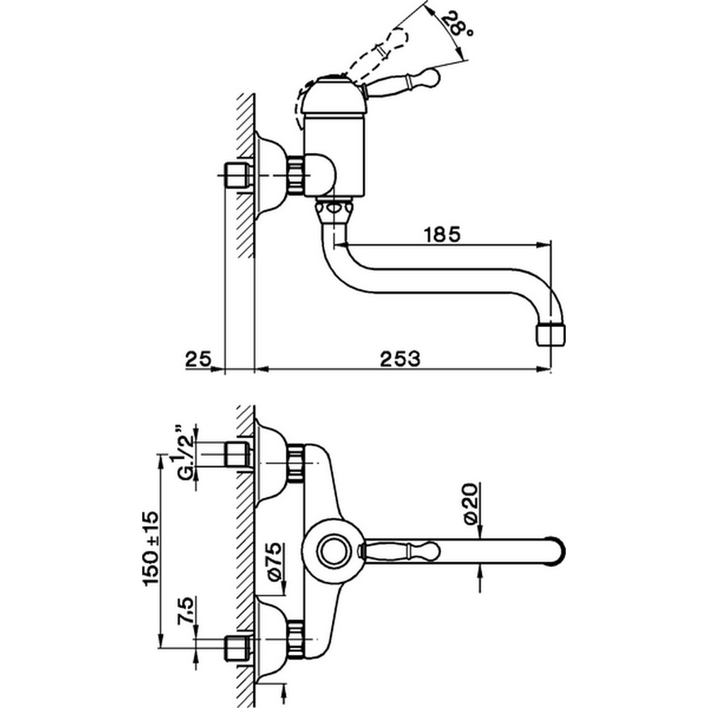 Cisal Arcana Royal Смеситель для кухни настенный с неповоротным изливом, цвет: chrome AY00040021 и другие сантехнические изделия бренда характеризует надежность, высокое качество и продолжительный срок службы. Изделие в стилистике прованс впечатляюще будет смотреться в различных цветовых решениях помещения.