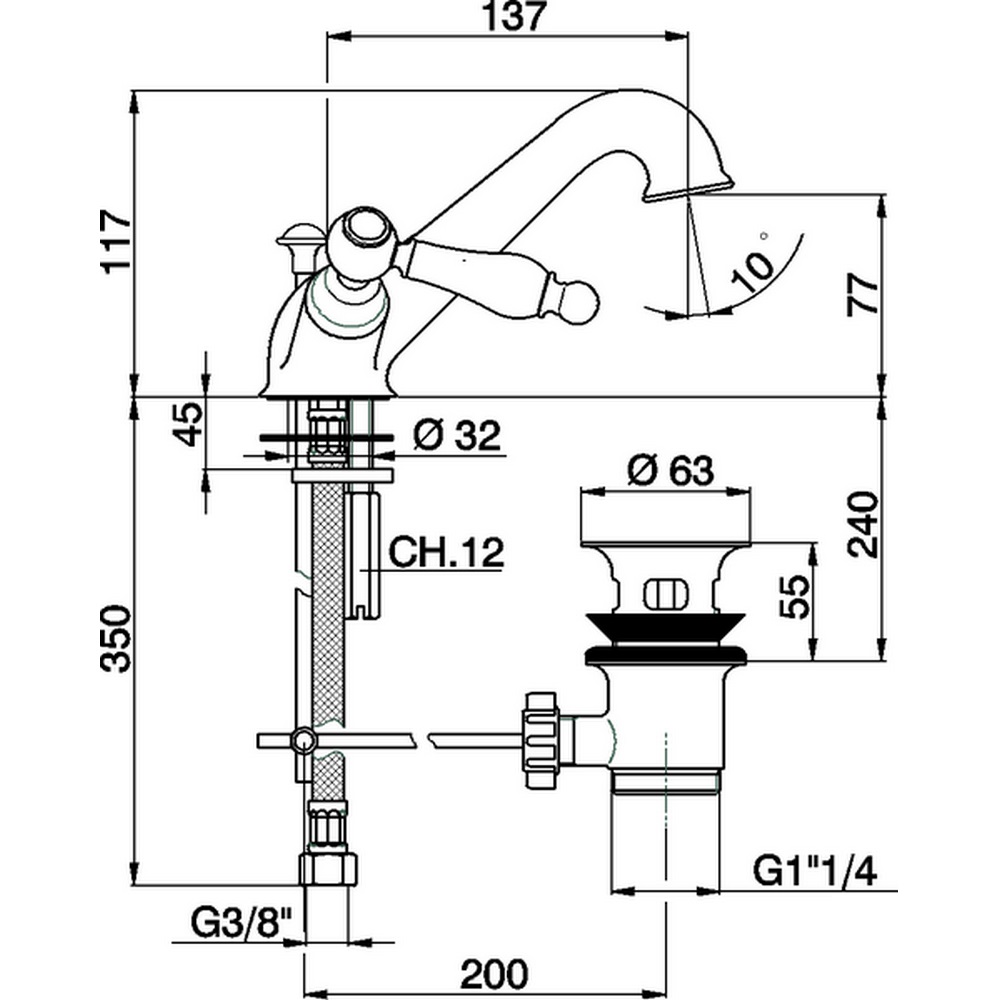 Cisal Arcana Toscana Смеситель для раковины, с донным клапаном, длина излива 13,7 см, цвет: chrome TS00051021 и другие сантехнические изделия бренда характеризует надежность, высокое качество и продолжительный срок службы. Изделие в стилистике прованс впечатляюще будет смотреться в различных цветовых решениях помещения.