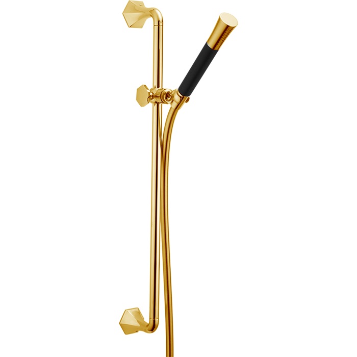 Cisal Cherie Душевой гарнитур: душевая лейка, шланг 150 см, штанга 90 см, цвет: 24k gold CE00311124 и другие сантехнические изделия бренда характеризует надежность, высокое качество и продолжительный срок службы. Изделие в стилистике арт-деко впечатляюще будет смотреться в различных цветовых решениях помещения.