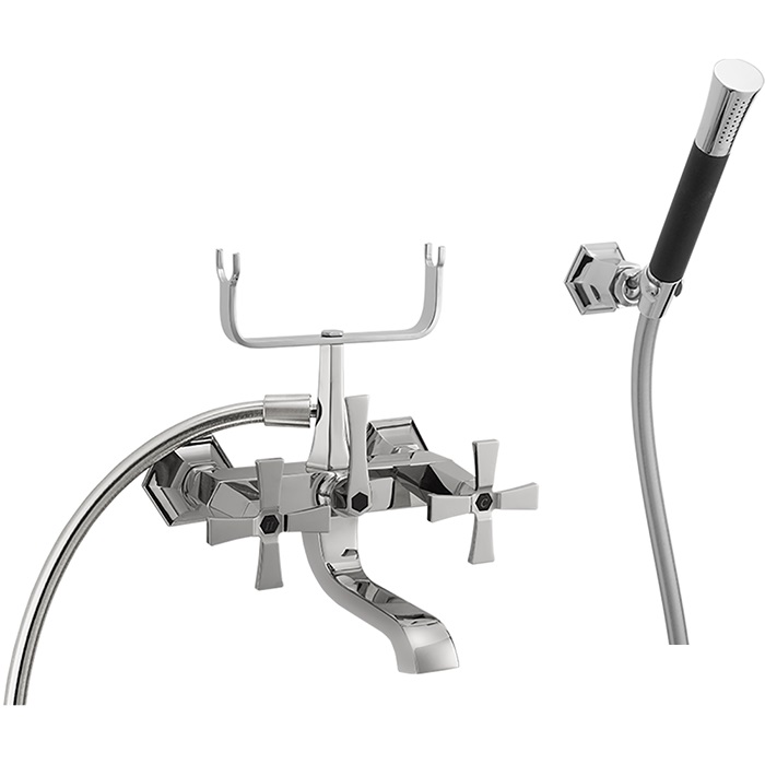 Cisal Cherie Смеситель для ванны накладной, с душевым комплектом, цвет: chrome/matt black CX0001206T и другие сантехнические изделия бренда характеризует надежность, высокое качество и продолжительный срок службы. Изделие в стилистике арт-деко впечатляюще будет смотреться в различных цветовых решениях помещения.