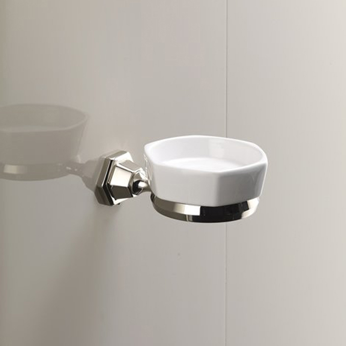 Devon&Devon Jubilee Мыльница с керамической чашей, подвесная, цвет: никель JB101NK и другие сантехнические изделия бренда характеризует надежность, высокое качество и продолжительный срок службы. Изделие в стилистике арт-деко впечатляюще будет смотреться в различных цветовых решениях помещения.
