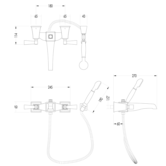Devon&Devon Vip Time Смеситель для ванны, цвет хром 2VPTIME234CR и другие сантехнические изделия бренда характеризует надежность, высокое качество и продолжительный срок службы. Изделие в стилистике арт-деко впечатляюще будет смотреться в различных цветовых решениях помещения.