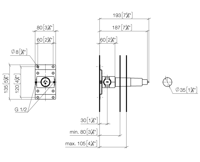 Dornbracht Встраиваемая часть смесителя для душа 3505097090 и другие сантехнические изделия бренда характеризует надежность, высокое качество и продолжительный срок службы. Изделие в стилистике минимализм впечатляюще будет смотреться в различных цветовых решениях помещения.