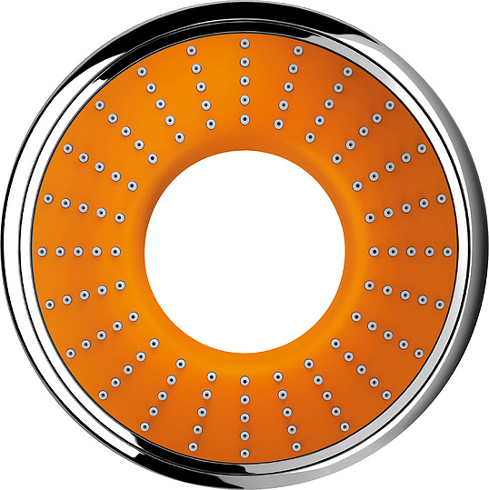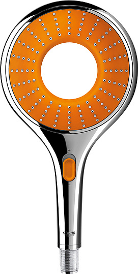 Grohe Rainshower Icon Ручной душ, 2 вида струи, цвет: оранжевый 27444000 и другие сантехнические изделия бренда характеризует надежность, высокое качество и продолжительный срок службы. Изделие в стилистике арт-деко впечатляюще будет смотреться в различных цветовых решениях помещения.