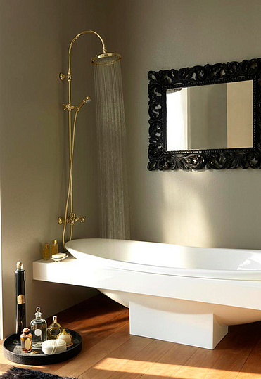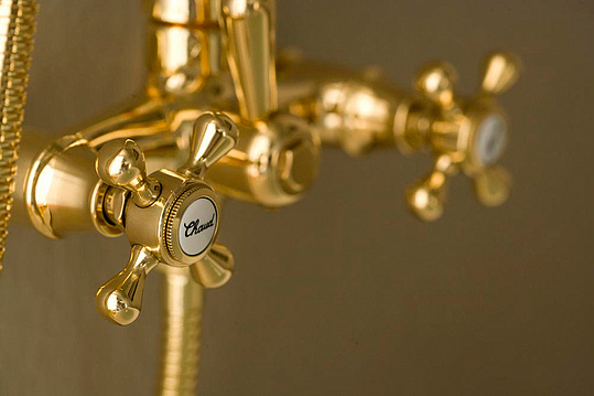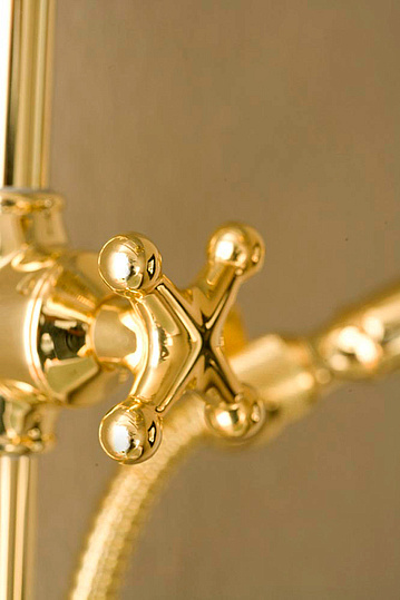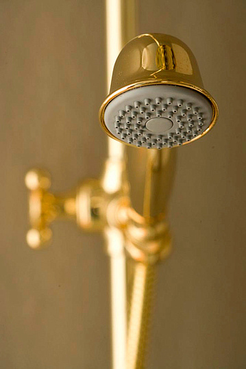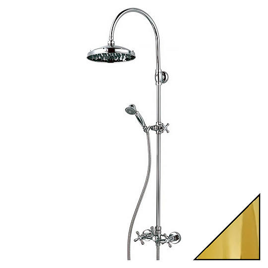 Bossini Retro Душевая стойка: смеситель, ручной и верхний душ, 1 вид струи, шланг, цвет: gold L01526.021 и другие сантехнические изделия бренда характеризует надежность, высокое качество и продолжительный срок службы. Изделие в стилистике прованс впечатляюще будет смотреться в различных цветовых решениях помещения.