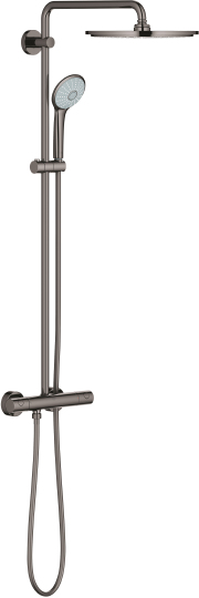 Grohe Euphoria Душевая стойка: термостатический смес., штанга, руч., верх. душ, цвет: темный графит 26075A00 и другие сантехнические изделия бренда характеризует надежность, высокое качество и продолжительный срок службы. Изделие в стилистике лофт впечатляюще будет смотреться в различных цветовых решениях помещения.