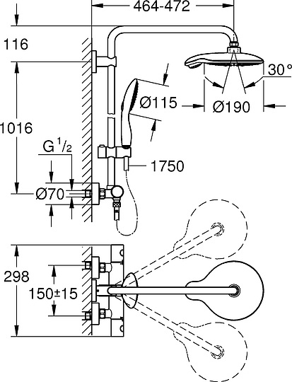 Grohe Euphoria Power&Soul System 190 Душевая стойка: термостат. смес., штанга, руч. душ, цвет: хром 26186000 и другие сантехнические изделия бренда характеризует надежность, высокое качество и продолжительный срок службы. Изделие в стилистике лофт впечатляюще будет смотреться в различных цветовых решениях помещения.