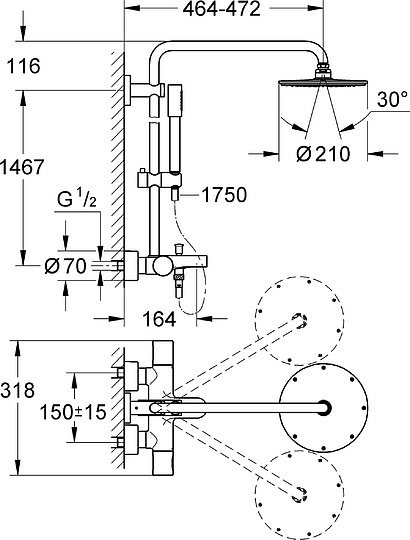 Grohe Rainshower System 210 Душевая стойка для ванны, с термостатом, излив 16,5 см, цвет: хром 27641000 и другие сантехнические изделия бренда характеризует надежность, высокое качество и продолжительный срок службы. Изделие в стилистике hi-tech впечатляюще будет смотреться в различных цветовых решениях помещения.