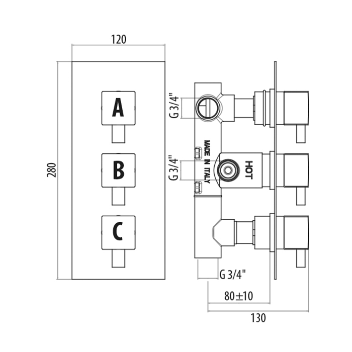 Gattoni Termostatici Термостатический встраиваемый смеситель для душа, цвет: хром TS993/25C0cr и другие сантехнические изделия бренда характеризует надежность, высокое качество и продолжительный срок службы. Изделие в стилистике hi-tech впечатляюще будет смотреться в различных цветовых решениях помещения.
