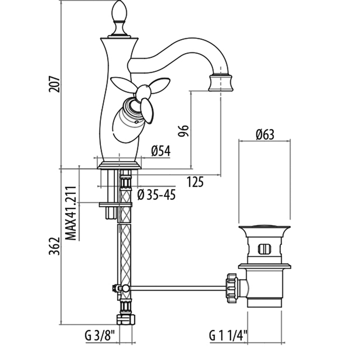Gattoni Timor Смеситель для раковины, цвет: золото 24К 1830018D0oro и другие сантехнические изделия бренда характеризует надежность, высокое качество и продолжительный срок службы. Изделие в стилистике прованс впечатляюще будет смотреться в различных цветовых решениях помещения.