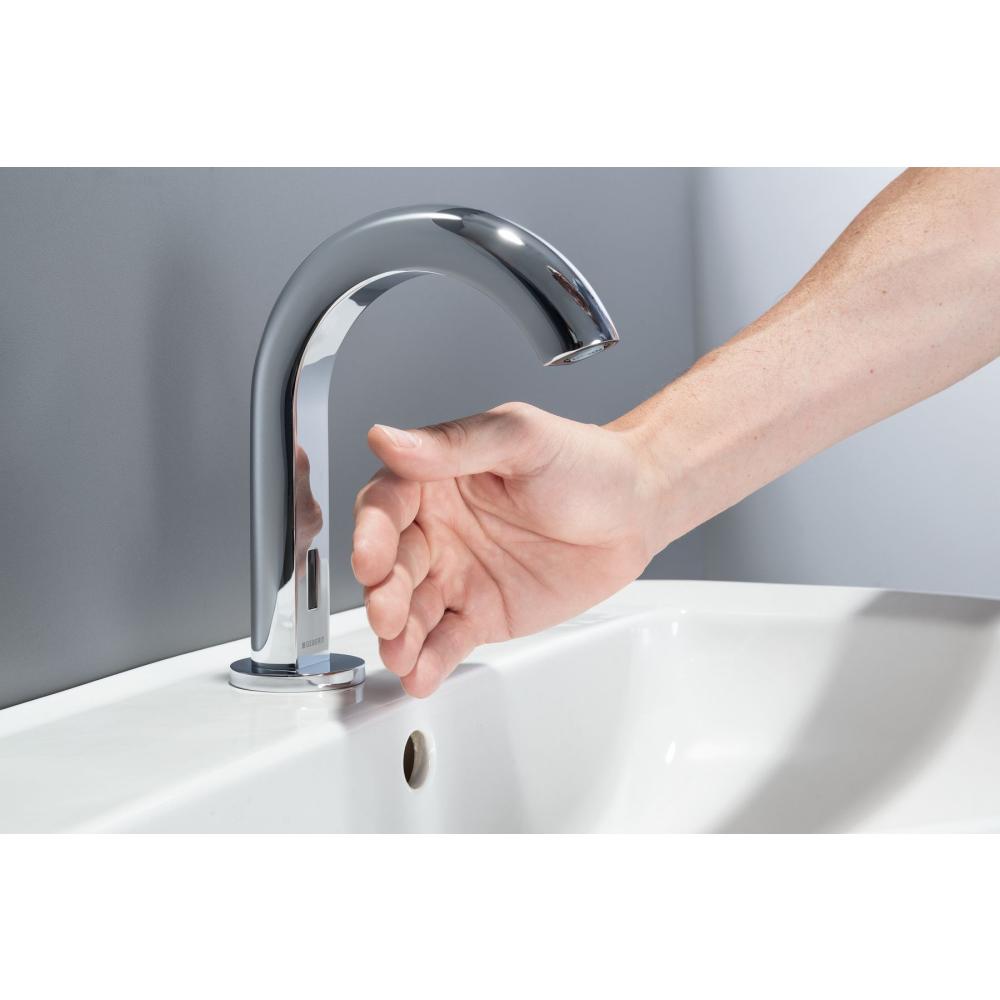 Geberit Piave Смеситель для раковины, сенсорный, цвет: хром глянцевый 116.166.21.1 и другие сантехнические изделия бренда характеризует надежность, высокое качество и продолжительный срок службы. Изделие в стилистике hi-tech впечатляюще будет смотреться в различных цветовых решениях помещения.