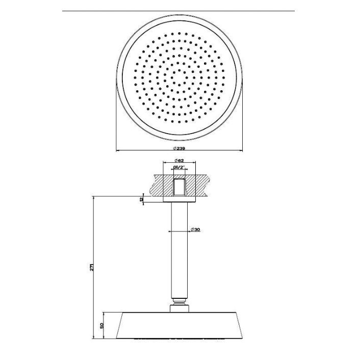 Gessi Cono Верхний душ 23,9 см 1 вид струи, кронштейн потолочный 28,1 см, цвет: chrome 45152#031 и другие сантехнические изделия бренда характеризует надежность, высокое качество и продолжительный срок службы. Изделие в стилистике неоклассика впечатляюще будет смотреться в различных цветовых решениях помещения.