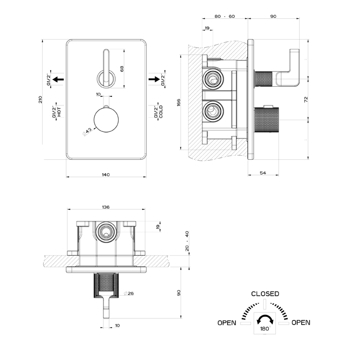 Gessi Inciso Термостат для ванны встраиваемый, 2 потребителя, цвет: finox brushed nickel 58134#149 и другие сантехнические изделия бренда характеризует надежность, высокое качество и продолжительный срок службы. Изделие в стилистике лофт впечатляюще будет смотреться в различных цветовых решениях помещения.