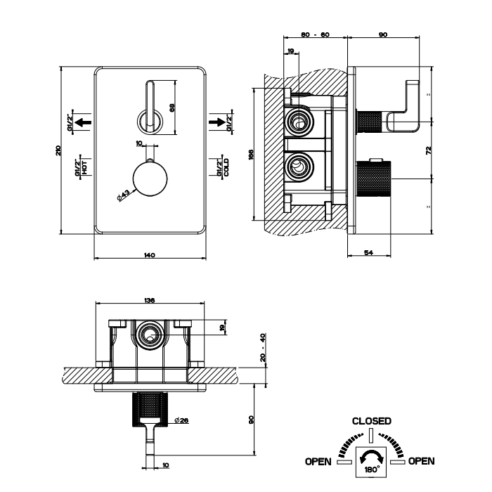 Gessi Inciso Термостат для ванны встраиваемый, 2 потребителя, запорный вентиль, цвет: chrome 58134#031 и другие сантехнические изделия бренда характеризует надежность, высокое качество и продолжительный срок службы. Изделие в стилистике лофт впечатляюще будет смотреться в различных цветовых решениях помещения.