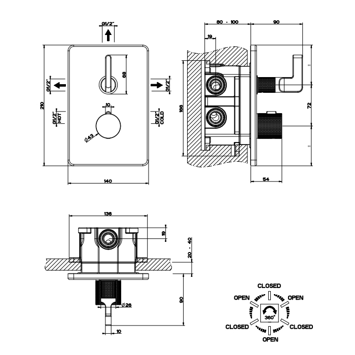 Gessi Inciso Термостат для ванны встраиваемый, 3 потребителя, запорный вентиль, цвет: gold PVD 58136#246 и другие сантехнические изделия бренда характеризует надежность, высокое качество и продолжительный срок службы. Изделие в стилистике лофт впечатляюще будет смотреться в различных цветовых решениях помещения.