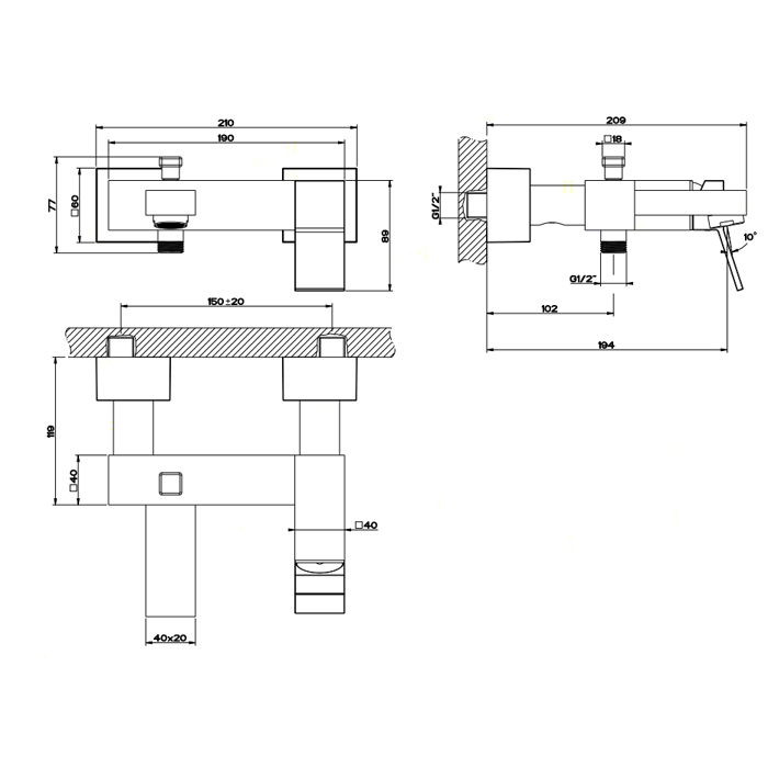 Gessi Rettangolo K Смеситель для ванны на 2 потребителя, излив 19,4 см, цвет: matte black 53013#299 и другие сантехнические изделия бренда характеризует надежность, высокое качество и продолжительный срок службы. Изделие в стилистике минимализм впечатляюще будет смотреться в различных цветовых решениях помещения.