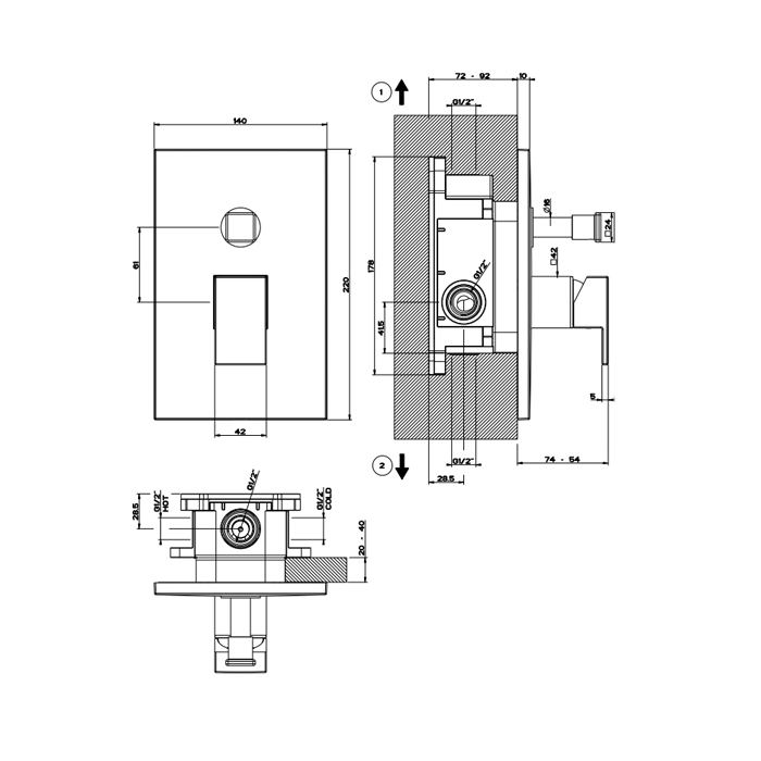Gessi Rettangolo Смеситель для ванны встраиваемый на 2 потребителя, внешняя часть, цвет: matte black 44604#299 и другие сантехнические изделия бренда характеризует надежность, высокое качество и продолжительный срок службы. Изделие в стилистике минимализм впечатляюще будет смотреться в различных цветовых решениях помещения.