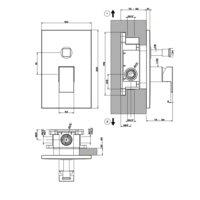 Gessi Rettangolo Смеситель для ванны встраиваемый на 2 потребителя, внешняя часть, цвет: chrome 44604#031 и другие сантехнические изделия бренда характеризует надежность, высокое качество и продолжительный срок службы. Изделие в стилистике минимализм впечатляюще будет смотреться в различных цветовых решениях помещения.