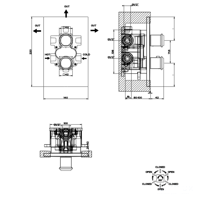 Gessi Встраиваемая часть термостатического смесителя на 3 потребителя 09269#031 и другие сантехнические изделия бренда характеризует надежность, высокое качество и продолжительный срок службы. Изделие в стилистике лофт впечатляюще будет смотреться в различных цветовых решениях помещения.