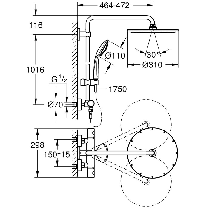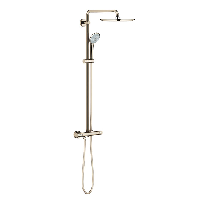 Grohe Euphoria XXL Душевая стойка с верхним душем, цвет: никель глянец 26075BE0 и другие сантехнические изделия бренда характеризует надежность, высокое качество и продолжительный срок службы. Изделие в стилистике лофт впечатляюще будет смотреться в различных цветовых решениях помещения.