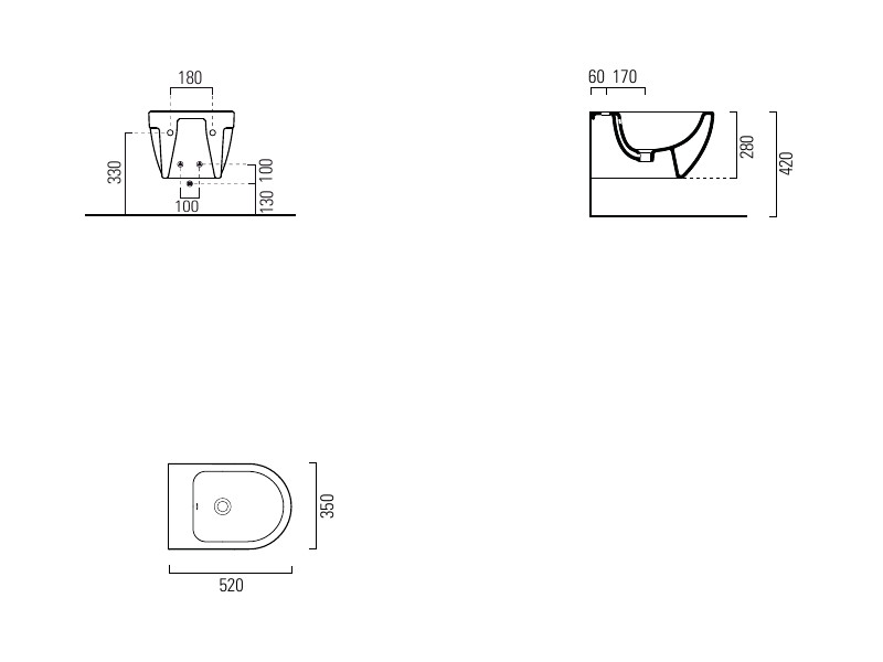 Биде подвесное GSI City 9164111 35x52 см, с отверстием под смеситель, с переливом, белое глянцевое: