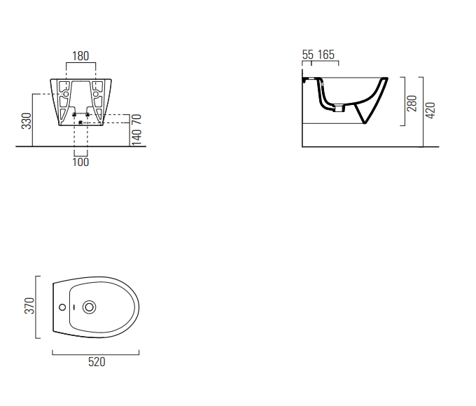 Биде подвесное GSI Modo 9864111 37x52 см, с отверстием под смеситель, с переливом, без крепежа, белое глянцевое: