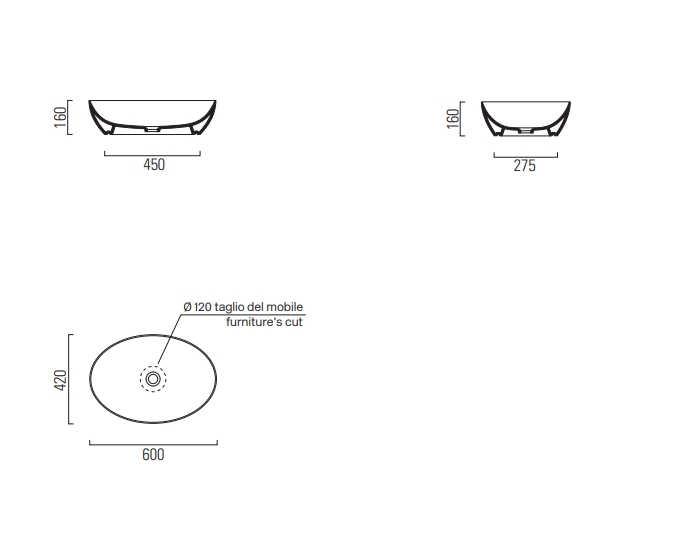 GSI Pura Раковина чаша 60x42x16h см, без перелива, без д/к, цвет: cenere opaco 884217 и другие сантехнические изделия бренда характеризует надежность, высокое качество и продолжительный срок службы. Изделие в стилистике минимализм впечатляюще будет смотреться в различных цветовых решениях помещения.
