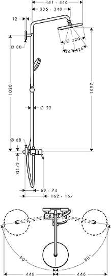 Hansgrohe Croma Душевая стойка: смеситель, верхний душ 22 см, ручной душ 4 режима, цвет: хром 27222000 и другие сантехнические изделия бренда характеризует надежность, высокое качество и продолжительный срок службы. Изделие в стилистике лофт впечатляюще будет смотреться в различных цветовых решениях помещения.
