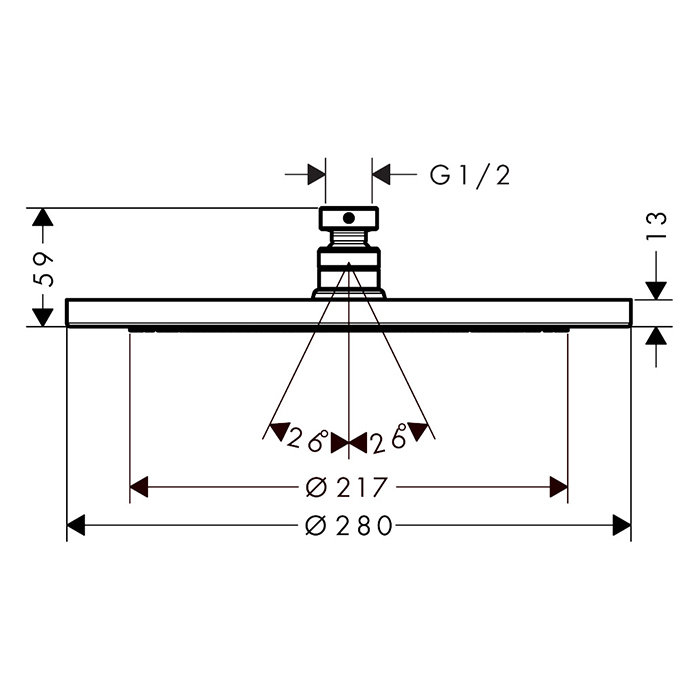 Hansgrohe Croma Верхний душ 28 см, 1 вид струи, регулируемый угол, цвет: матовый черный 26220670 и другие сантехнические изделия бренда характеризует надежность, высокое качество и продолжительный срок службы. Изделие в стилистике лофт впечатляюще будет смотреться в различных цветовых решениях помещения.