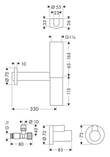Hansgrohe Flowstar Бутылочный сифон и два угловых вентиля, цвет: хром 52120000 и другие сантехнические изделия бренда характеризует надежность, высокое качество и продолжительный срок службы. Изделие в стилистике лофт впечатляюще будет смотреться в различных цветовых решениях помещения.