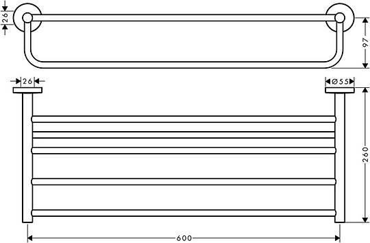 Закажите Hansgrohe Logis Universal Полка для полотенец с держателем подвесная 60x25 см, цвет: хром 41720000 от производителя Hansgrohe, коллекция Logis Universal в салоне европейской сантехники Дизайн Сантехники с быстрой доставкой по Москве. Представлены подробные характеристики и фотографии, которые позволят сделать правильный выбор и заказать товар.