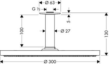 Hansgrohe Raindance S Верхний душ 30 см, 1 вид струи, кронштейн потолочный 10 см, цвет: хром 27494000 и другие сантехнические изделия бренда характеризует надежность, высокое качество и продолжительный срок службы. Изделие в стилистике лофт впечатляюще будет смотреться в различных цветовых решениях помещения.