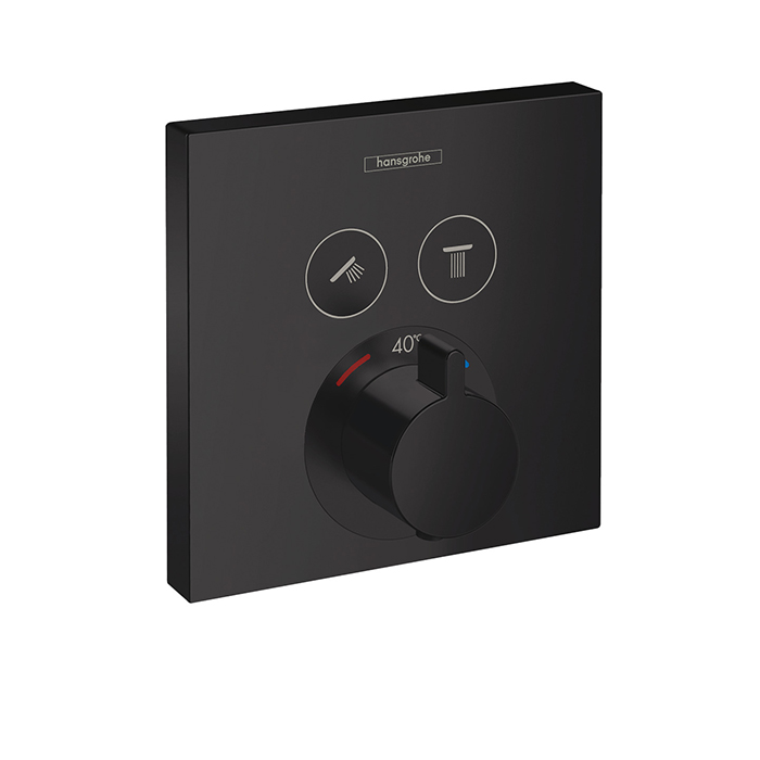 Hansgrohe ShowerSelect Термостат для душа встраиваемый на 2 потребителя, цвет: матовый черный 15763670 и другие сантехнические изделия бренда характеризует надежность, высокое качество и продолжительный срок службы. Изделие в стилистике hi-tech впечатляюще будет смотреться в различных цветовых решениях помещения.