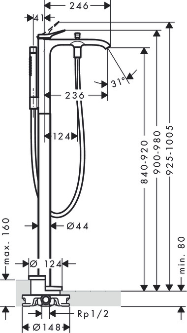 Hansgrohe Vivenis Смеситель для ванны напольный однорыч. с изл. 23,6 см, отдельн. цвет: мат. черный 75445670 и другие сантехнические изделия бренда характеризует надежность, высокое качество и продолжительный срок службы. Изделие в стилистике hi-tech впечатляюще будет смотреться в различных цветовых решениях помещения.